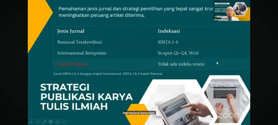 “Melalui buku ini, saya ingin mahasiswa tidak hanya menulis, tetapi juga berani mempublikasikan karya ilmiahnya di jurnal bereputasi. Literasi publikasi adalah bagian penting dari perjalanan akademik yang harus kita biasakan,” tutur Dr. Hamzah menutup sesi webinar.