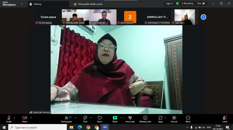 Dipandu oleh moderator Minhajuddin Madi, S.H., sesi ini kembali disampaikan oleh narasumber utama, Dr. Hj. Syahriyah Semaun, S.E., M.M., yang dengan apik menjelaskan konsep-konsep dasar regresi non-parametrik, termasuk uji Kruskal-Wallis dan Mann-Whitney, beserta aplikasi praktisnya dalam penelitian ekonomi syariah. Peserta tampak aktif berpartisipasi melalui sesi tanya jawab, di mana banyak yang berbagi pengalaman riset mereka dan meminta klarifikasi mengenai perangkat lunak seperti SPSS untuk analisis data non-normal. “Sesi ini sangat bermanfaat karena membuka wawasan baru tentang alternatif metode ketika asumsi parametrik tidak terpenuhi,” komentar salah seorang peserta, seorang mahasiswa doktoral dari universitas tetangga.