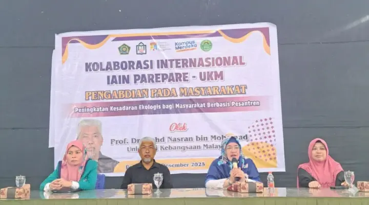 Parepare, 29 Desember 2025 – Program Pascasarjana Institut Agama Islam Negeri (IAIN) Parepare, melalui Prodi Magister Hukum Keluarga Islam (HKI), berhasil menyelenggarakan kegiatan kolaborasi internasional dengan Universiti Kebangsaan Malaysia (UKM) dalam bentuk Pengabdian kepada Masyarakat (PKM). Kegiatan bertajuk "Kolaborasi Internasional IAIN Parepare-UKM Pengabdian kepada Masyarakat" dengan tema "Peningkatan Kesadaran Ekologis bagi Masyarakat Berbasis Pesantren" ini digelar pada 23 Desember 2025 di Madrasah Aliyah (MA) DDI Lil Banat, Kota Parepare.