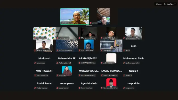 Parepare, 15 November 2025 – Pascasarjana Institut Agama Islam Negeri (IAIN) Parepare menggelar Simposium Lecturer Series I bertajuk "Hukum Islam sebagai Fondasi Ekoteologi dan Fiqih Lingkungan" secara daring melalui Zoom Meeting dan live streaming YouTube Pascasarjana IAIN Parepare. Acara yang digelar pada Sabtu malam (15/11) itu dihadiri puluhan mahasiswa dan dosen, meski jumlah peserta lebih sedikit dari kegiatan sebelumnya akibat kesibukan peserta.